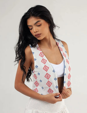 Grecia V-Neck Vest White+Blue+Red Women