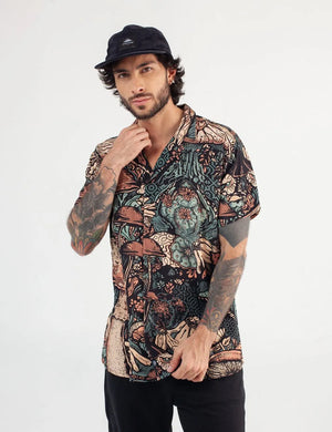 Jardín de los dioses Multicolor Sport Collar Men's Short Sleeve Shirt
