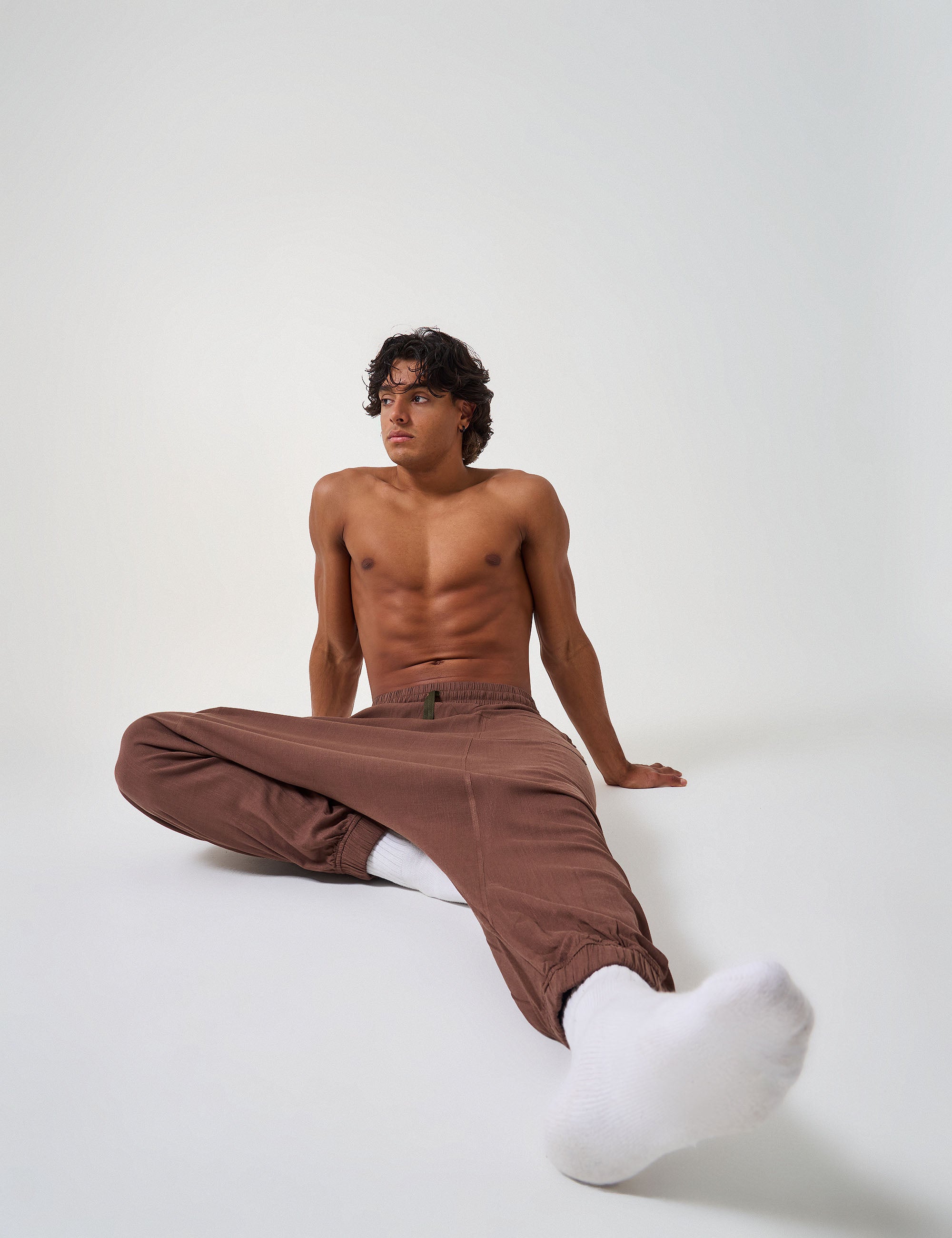 Relaxed, authentic, and full of flow. The Kona Café Aladdin Pants are the garment that combines freedom of movement with a bohemian and modern style. Inspired by classic Aladdin pants, this style stands out for its loose fit, low rise, and fitted ankles, giving it a relaxed yet distinctive look. With a warm and versatile brown hue, the Kona Café is perfectly suited to warm climates or lazy days, becoming the ideal ally for those seeking comfort without sacrificing style. Perfect for travel, creative days, or simply relaxing in style.