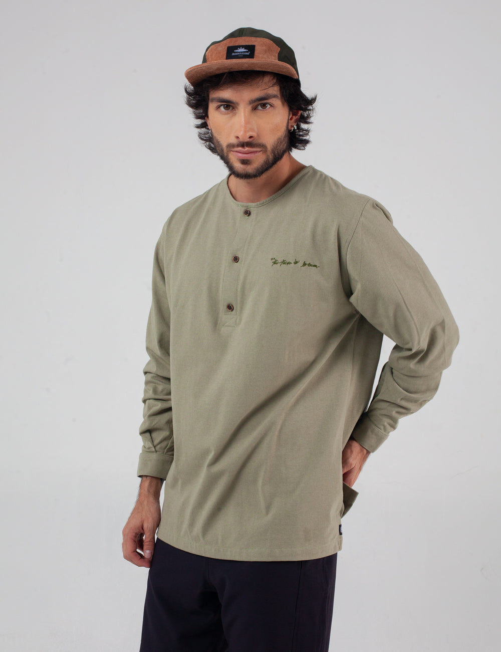 Men's Pistachio Green Khat Sport Collar Long Sleeve Shirt