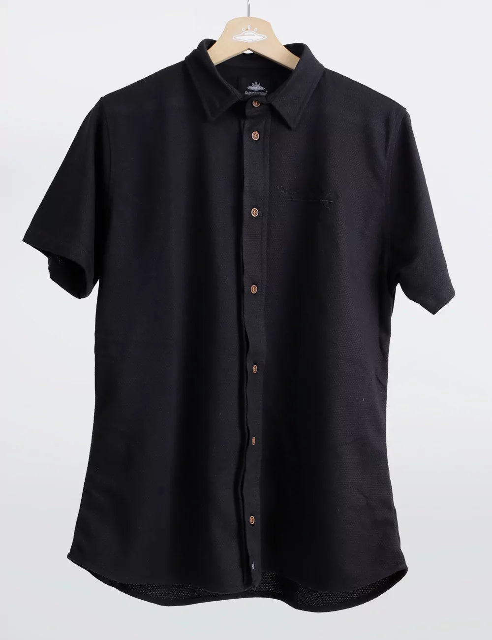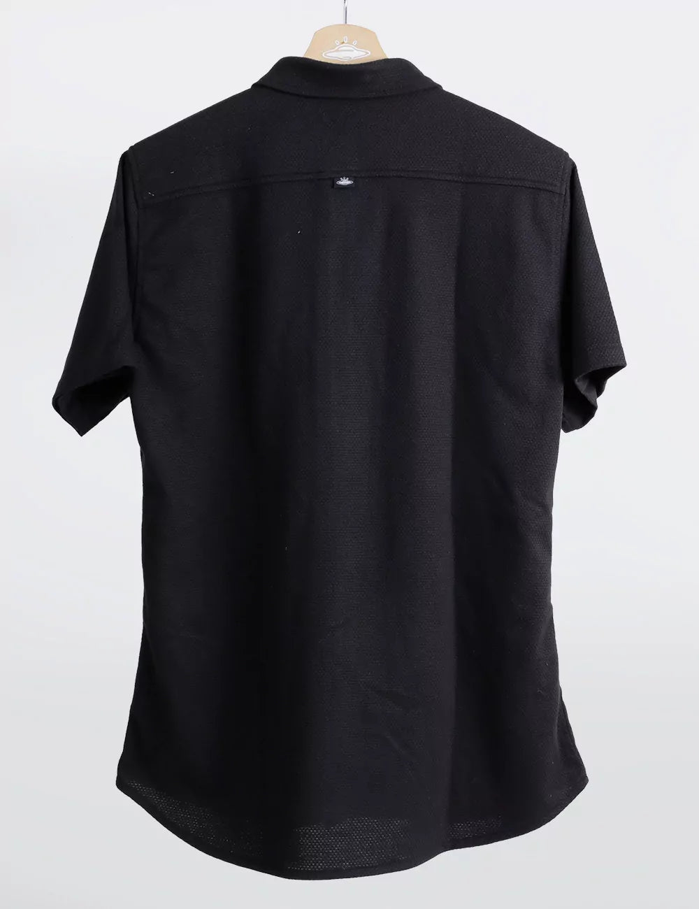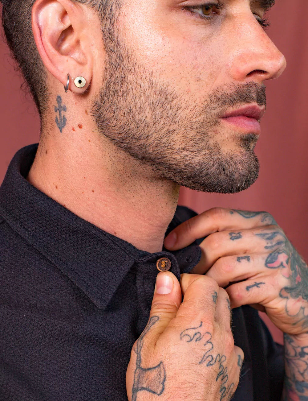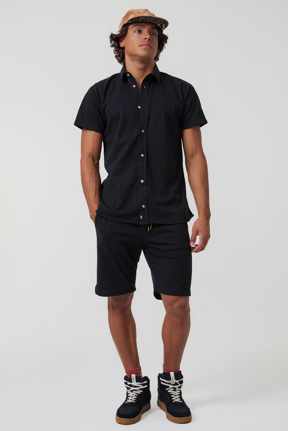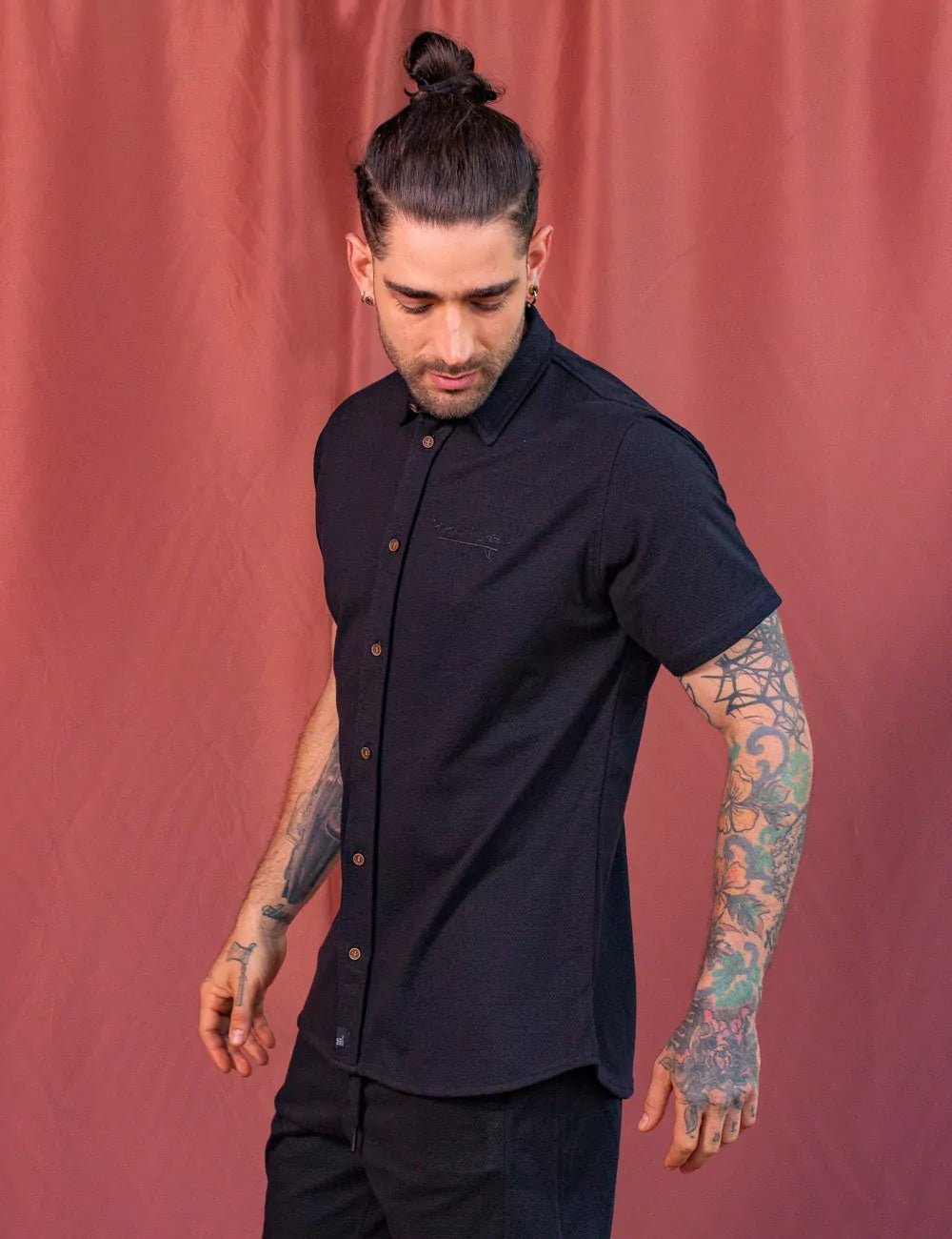 The regular fit black Azabache shirt is the perfect choice for the modern man seeking versatility. Its classic design makes it ideal for business meetings, events, outings with friends, and special occasions. Pair it with your favorite Recess shorts or our baggy pants for a casual and timeless look.