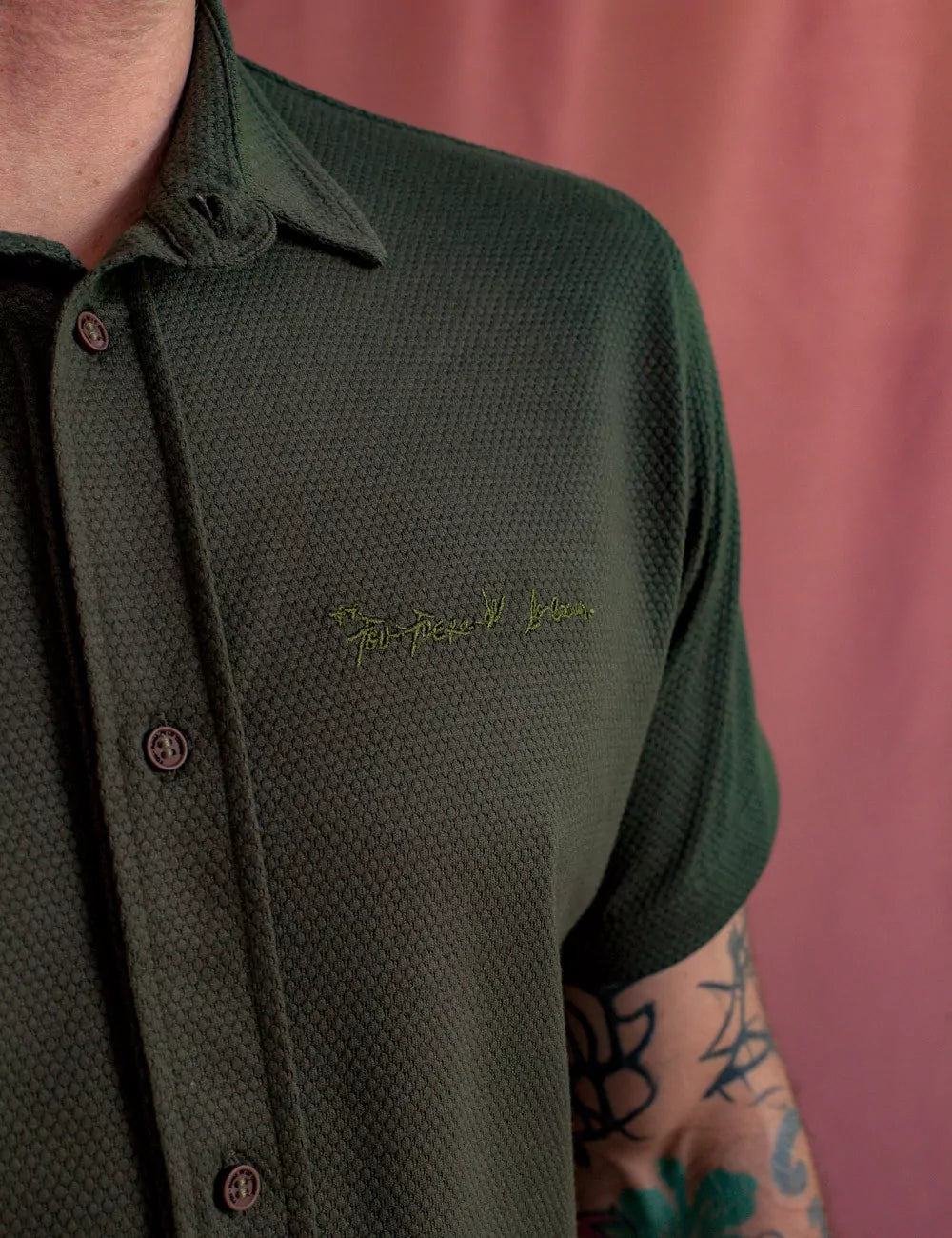 The regular fit Urano green shirt is the perfect choice for the modern man seeking versatility. Its classic design makes it ideal for business meetings, events, outings with friends, and special occasions. Pair it with your favorite Recess shorts or our baggy pants for a casual and timeless look.