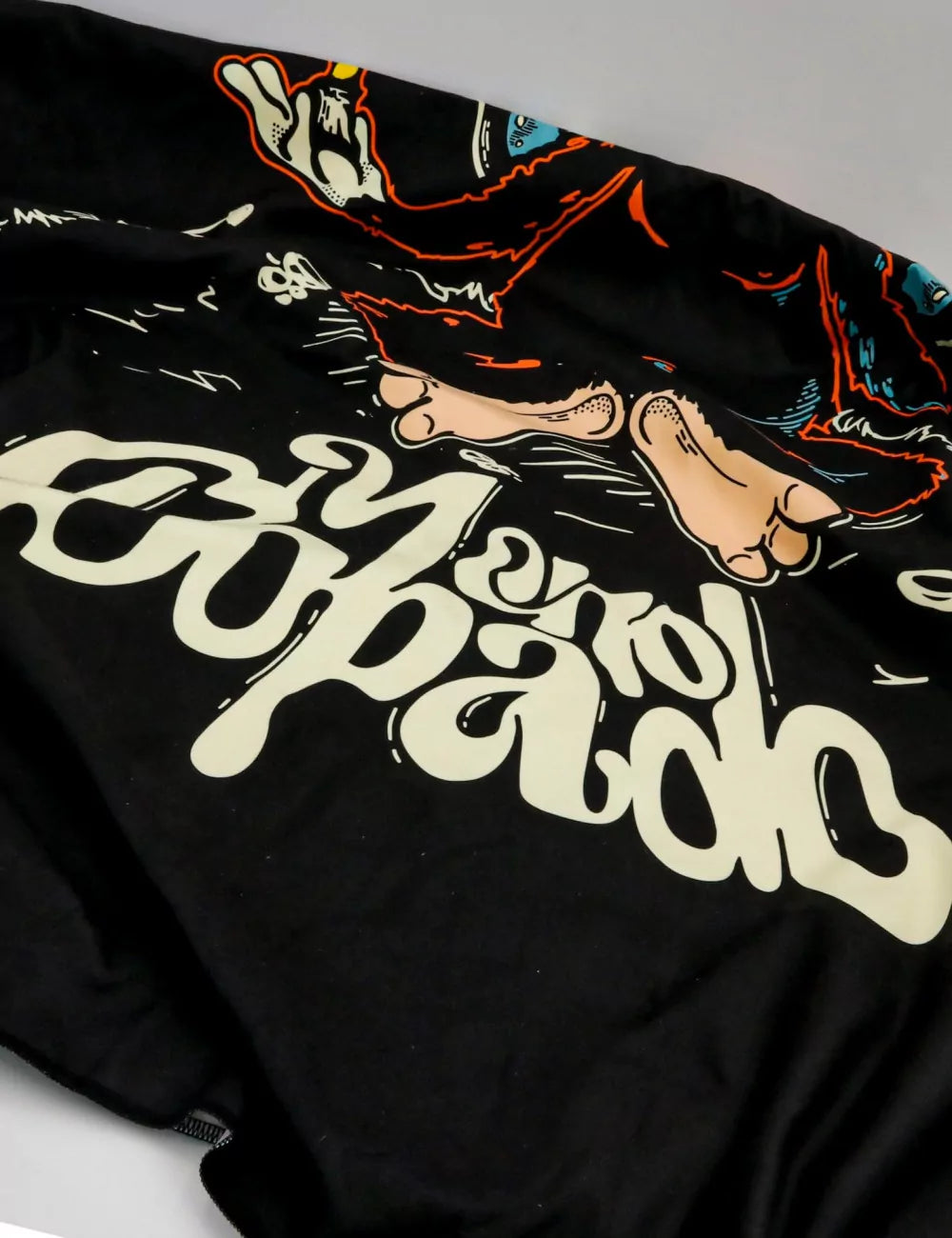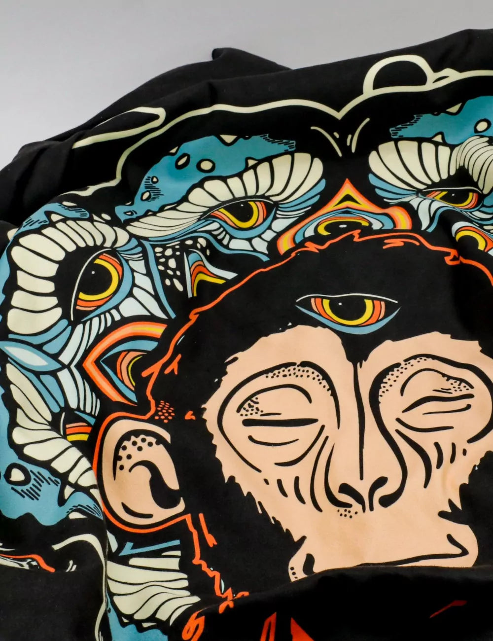 Unveil the Mysteries of Evolution. Have you ever wondered what made us human? Our traveler towel, inspired by Terence McKenna's revolutionary theory, invites you to explore a possible answer. With a psychedelic design that captures the essence of psilocybin, this item is more than just a towel; it’s a statement of curiosity and critical thinking.