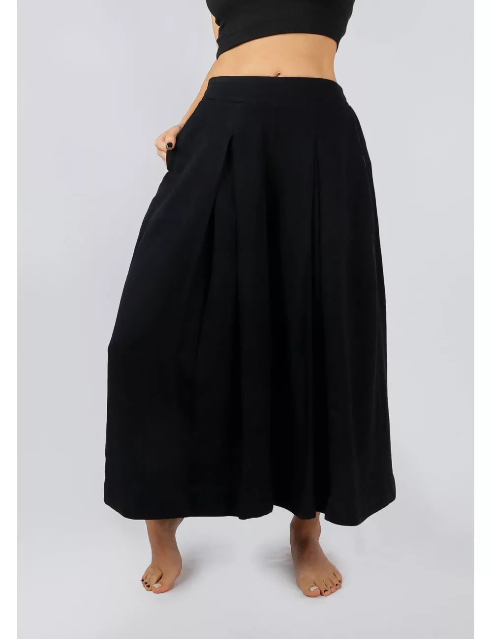 Timeless elegance and modern comfort. Its versatile design allows you to effortlessly transition from a casual look to a sophisticated one. Perfect for any occasion. Setting a new trend, culotte pants are the freshest, most comfortable, and cutting-edge option you can choose. With a fitted waist and wide legs, they adapt perfectly to the body. Versatile for dressing up, they pair well with any garment for any occasion.