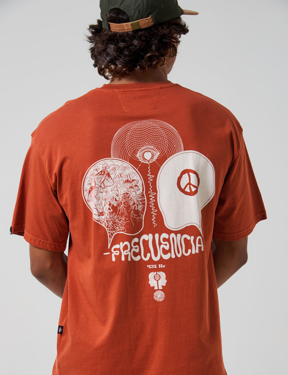 This unique design represents the connection between nature and inner peace. Two heads, one with mushrooms and roots, a symbol of growth and connection with the earth, and another with the peace sign, representing harmony and tranquility, come together through energetic vibrations.