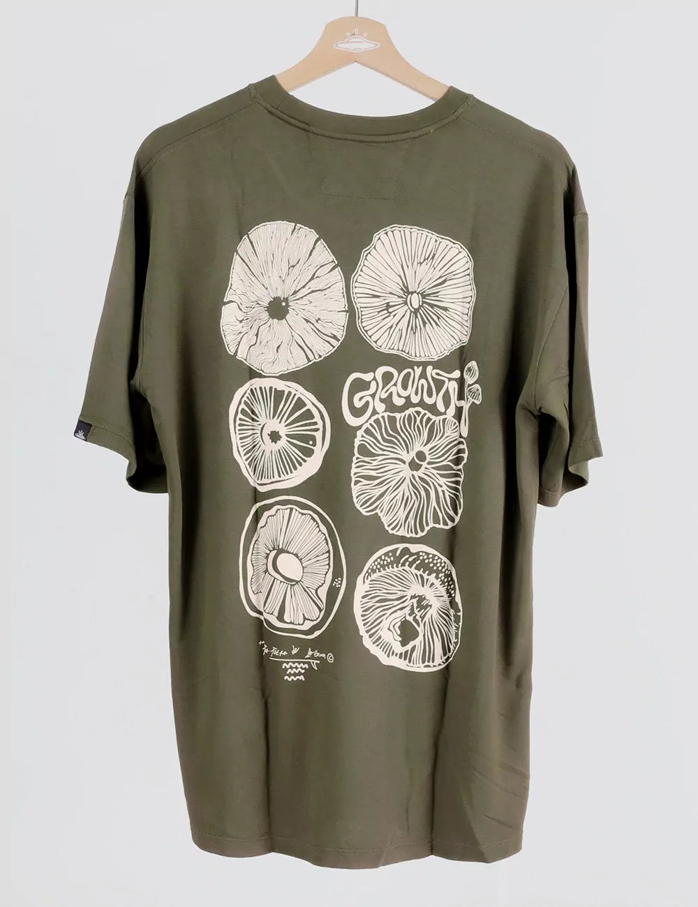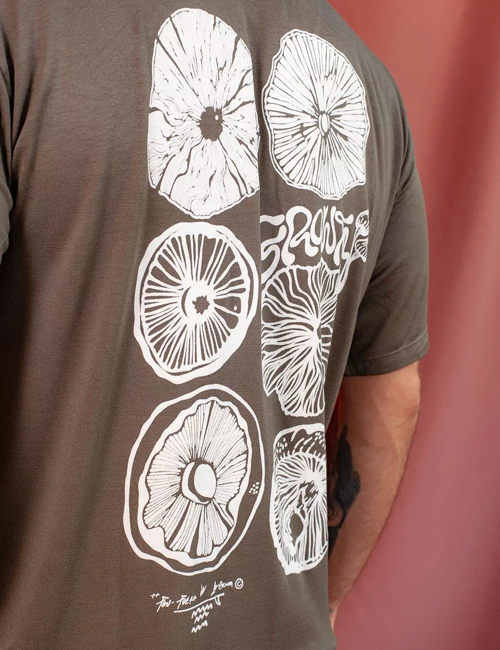 Cultivate your inner self. Inspired by the mushroom kingdom, this t-shirt invites you to connect with nature and foster your personal growth. Mushrooms, symbols of transformation and regeneration, will accompany you on your path to new goals.