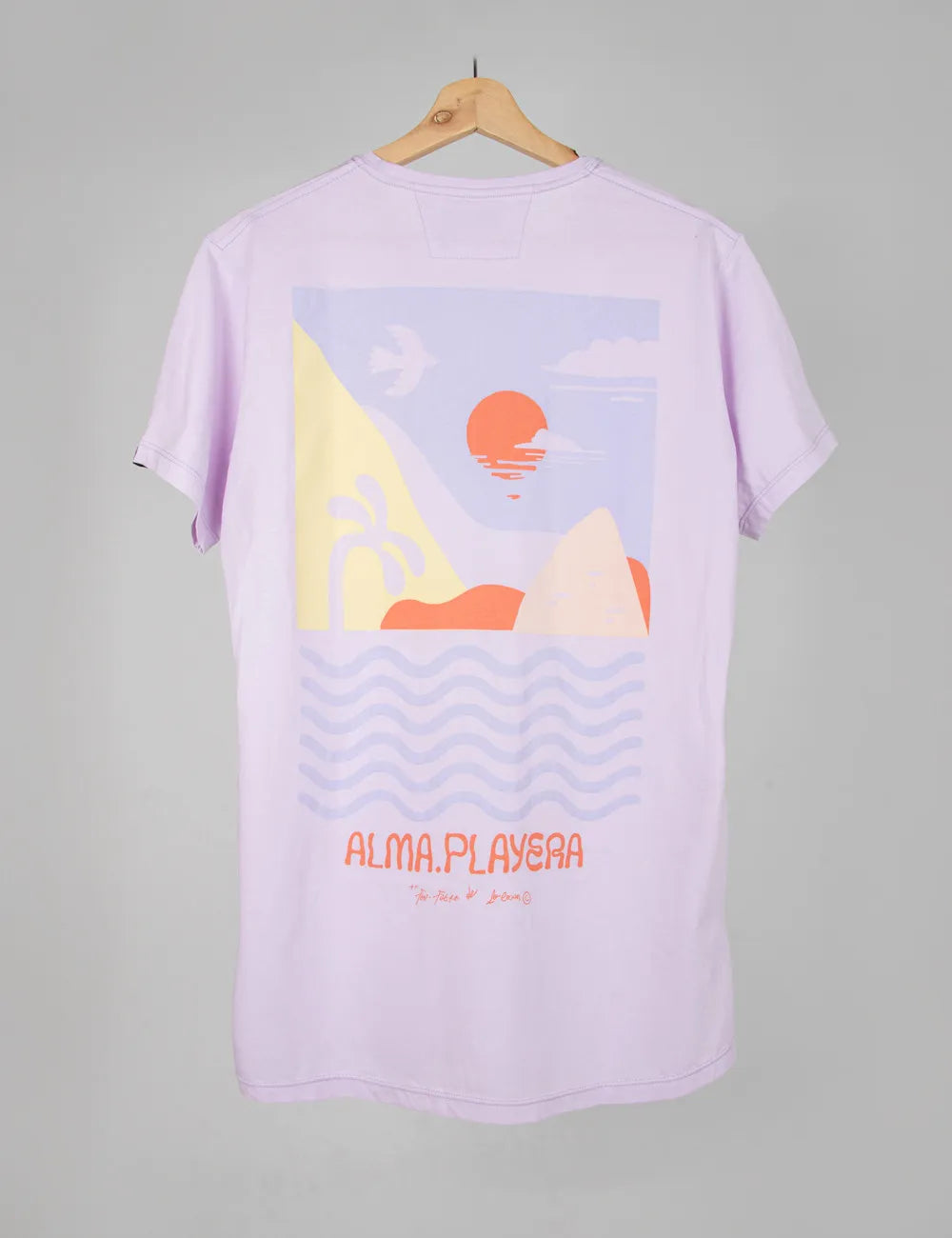 Feel the freedom of every wave with our Alma Playera T-shirt. Let yourself be carried away by the sea breeze with our beach print T-shirt made by these crazy people on the seashore. The graphics of waves, sun and birds will transport you to a paradise beach. Perfect for your days of relaxation and adventure.